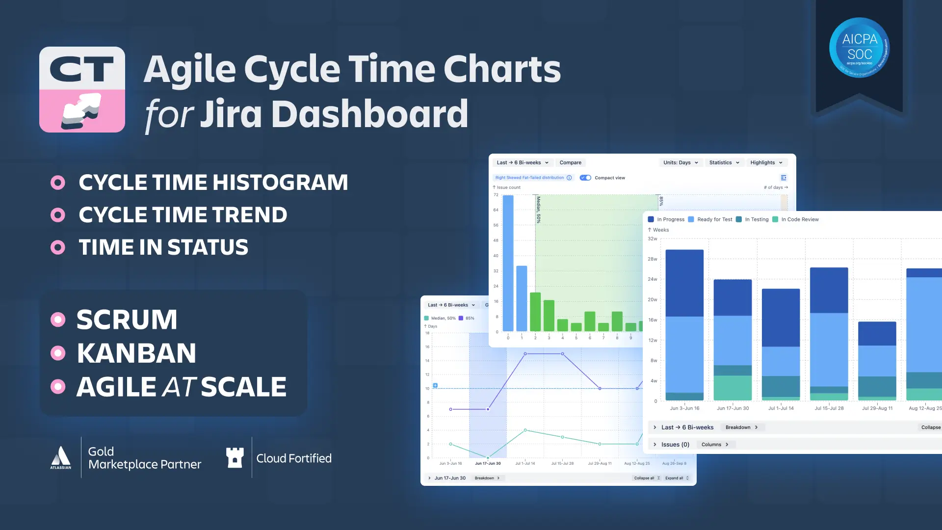 - Use Cycle Time Histogram, Cycle Time Trend, and Time in Status reports to visualize data and highlight hidden productivity issues
