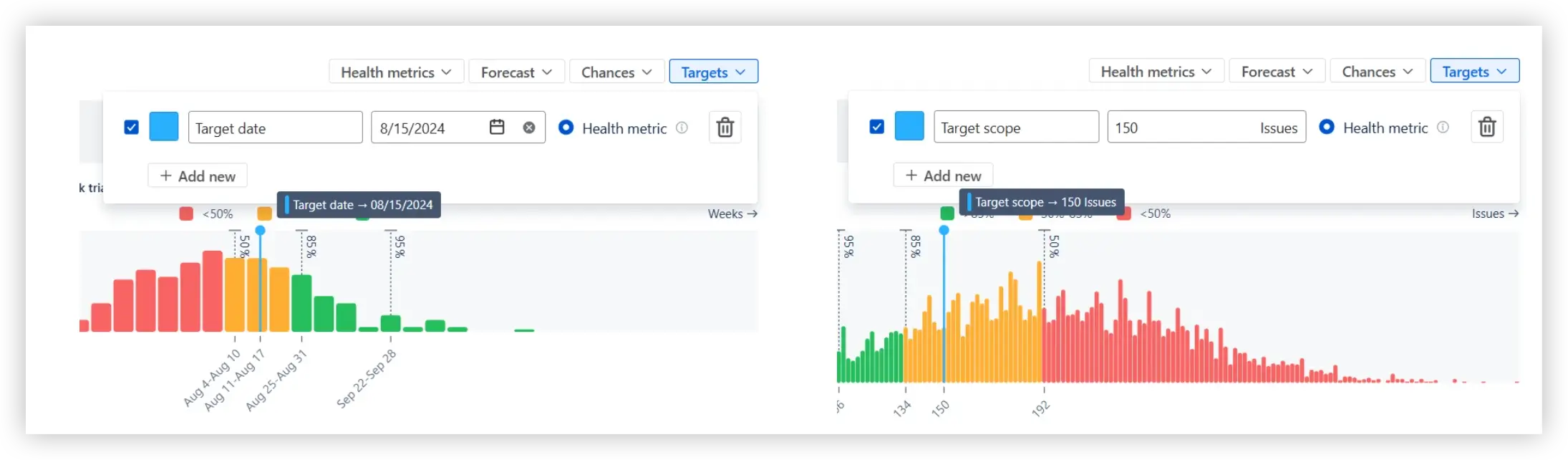 You can add target dates (When view) or target scope values (How many view) directly on the chart using the Targets menu.