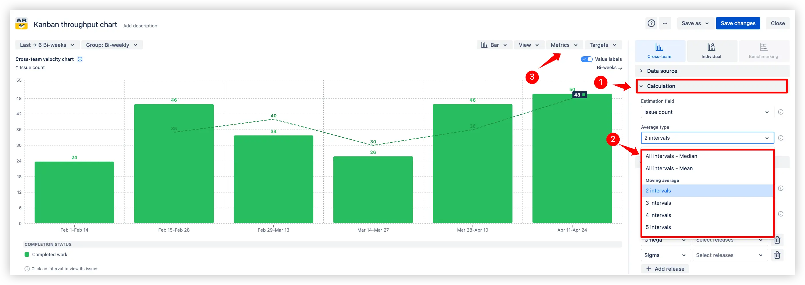 Use this feature to smooth out fluctuations, highlight actual delivery capacity, and improve throughput forecasting.