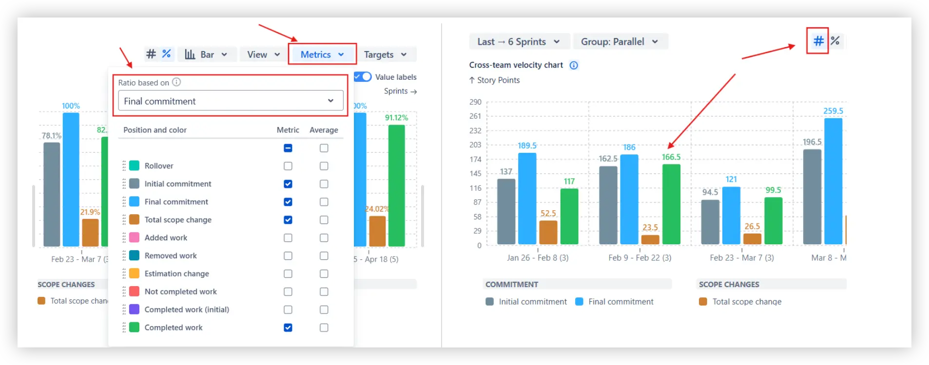 Ratio-based setting and absolute values in the Planned vs actual chart in Jira