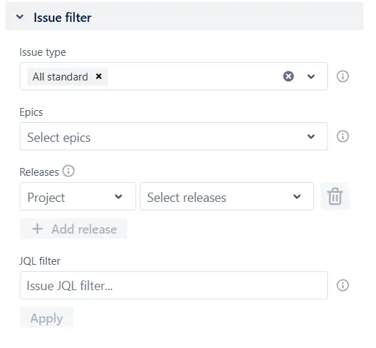 Focus on specific issue types, epics, releases, or JQL-defined scopes.