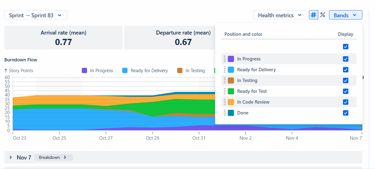 To reduce noise, you can hide specific statuses or reorder the bands to highlight the most important stages in your sprint workflow: