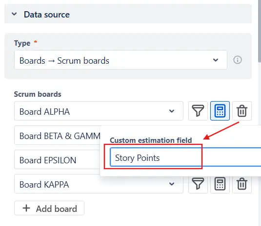 When working with multiple Scrum boards, you can even assign board-specific estimation fields. This is especially useful when different teams estimate differently (for example, one team uses Story Points while another uses hours):